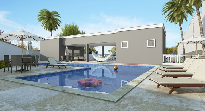 Além de toda a funcionalidade e conforto que os apartamentos oferecem, o condomínio possui uma área de lazer completa com quadra poliesportiva, playground, salão de festas, piscina adulto e infantil e churrasqueira.